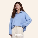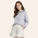 Bagian leher yang berbentuk V-neck, berkerah dan ada zipper semakin membuat penampilanmu mempesona!